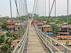 In the afternoon, you reach the jungle. Via a suspension bridge over the river, you walk to your hotel on the edge of the jungle. Bukit Lawang is a popular base for orangutan trekking and has a cosy tourist street full of restaurants. You'll see cottages on stilts on the banks of the river, women doing laundry and people bathing. It's a busy place.