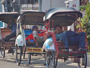 Awakened by the shouting from the mosques, the day starts early. Plenty of time to wander the streets of Yogyakarta. Outside the hotel, there are often several becak drivers ready to show you around the city. We advise you not to walk too much. This is because from the bicycle taxi you can let everything sink in and it really doesn't cost anything. You will ride through the small working-class streets and the friendly driver of the bike will know where to find the main sights. He will also show you various batik workshops. At various places in the city, you can watch the (hand) production process and there are certainly some beautiful paintings on display. Just keep in mind that your driver has often made arrangements with the owner of the shop and so you pay a bit more. Bargain away...