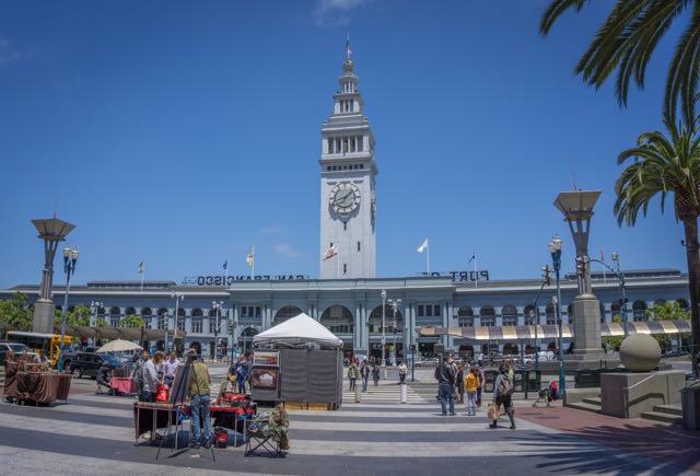 While I'm usually afraid of fireworks in public places, private fireworks are simply forbidden in San Francisco because of all the wooden buildings that are typical of the USA. The public fireworks are all the more beautiful for it. Unbelievable fireworks are set off from the harbour building, the Ferry Building, and from two ships behind it. The view from the harbour building is brilliant, as you are standing right between the Oakland Bay Bridge and the Golden Gate.
